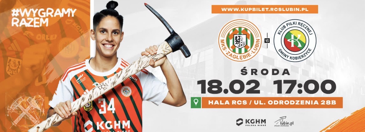 Starcie ćwierćfinałowe w walce o Puchar Polski między KGHM MKS Zagłębiem Lubin a KPR-em Gminy Kobierzyce, już w środę 18 lutego o godz. 17:00 w hali lubińskiego RCS.