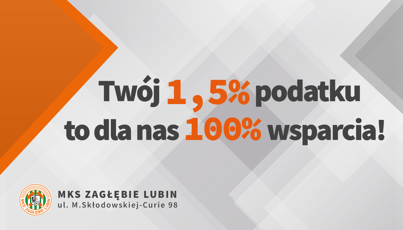 Wypełniając odpowiednią rubrykę w rocznym zeznaniu podatkowym PIT należy wpisać: MKS Zagłębie Lubin numer KRS: 0000126455 z dopiskiem: MKS Zagłębie Lubin.